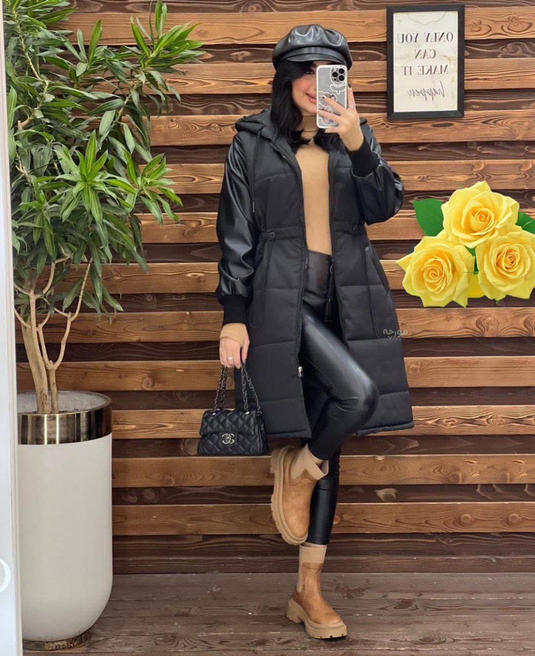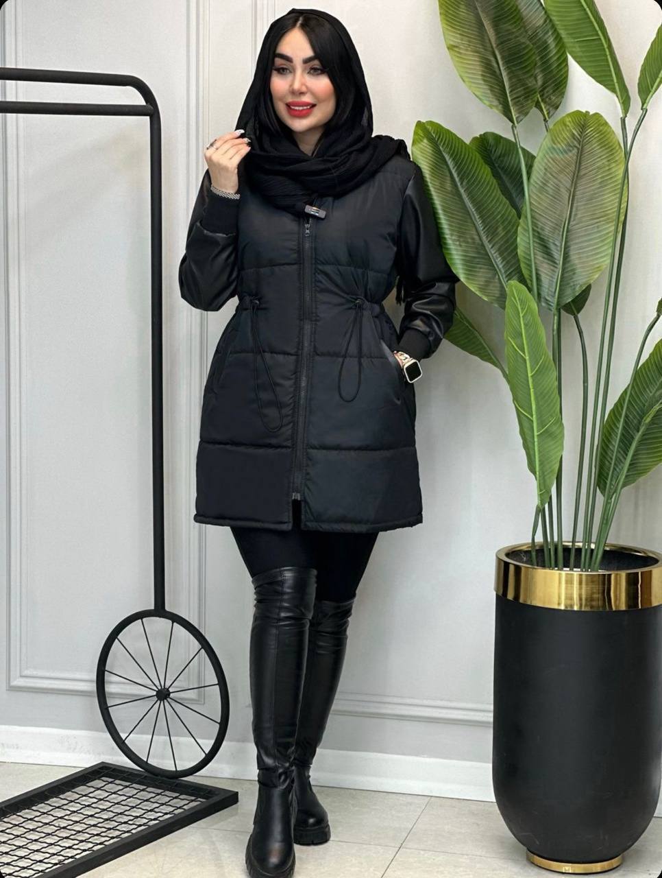 کاپشن داخل پشم شیشه آستری کشی آستین چرم
